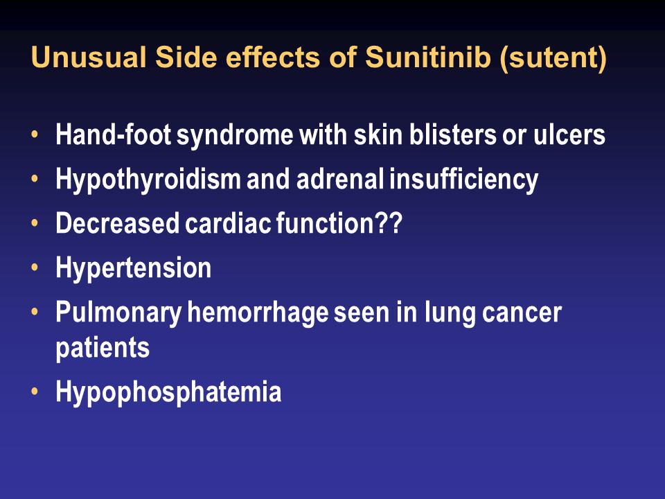 - tratamiento con Sutent 50mg capsula causará hepatotoxicidad severa con insuficiencia hepática; Verifique las pruebas de función hepática antes de comenzar el tratamiento.